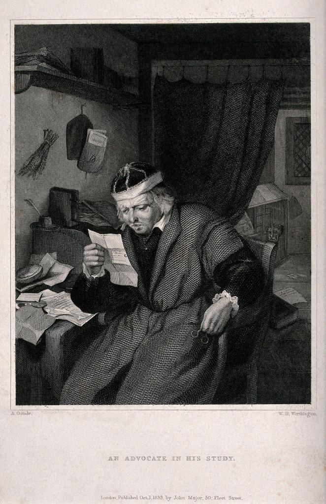 Title: A lawyer in his study. Engraving by W.H. Worthington after A. Ostade.